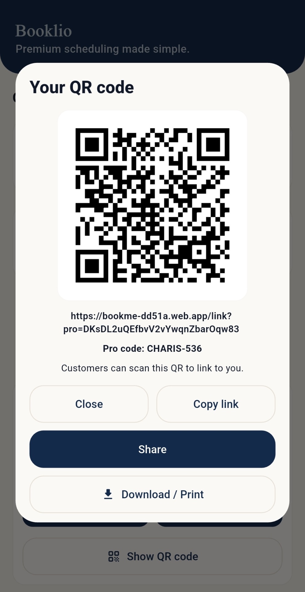 Send your unique booking link or code to customers through any channel.